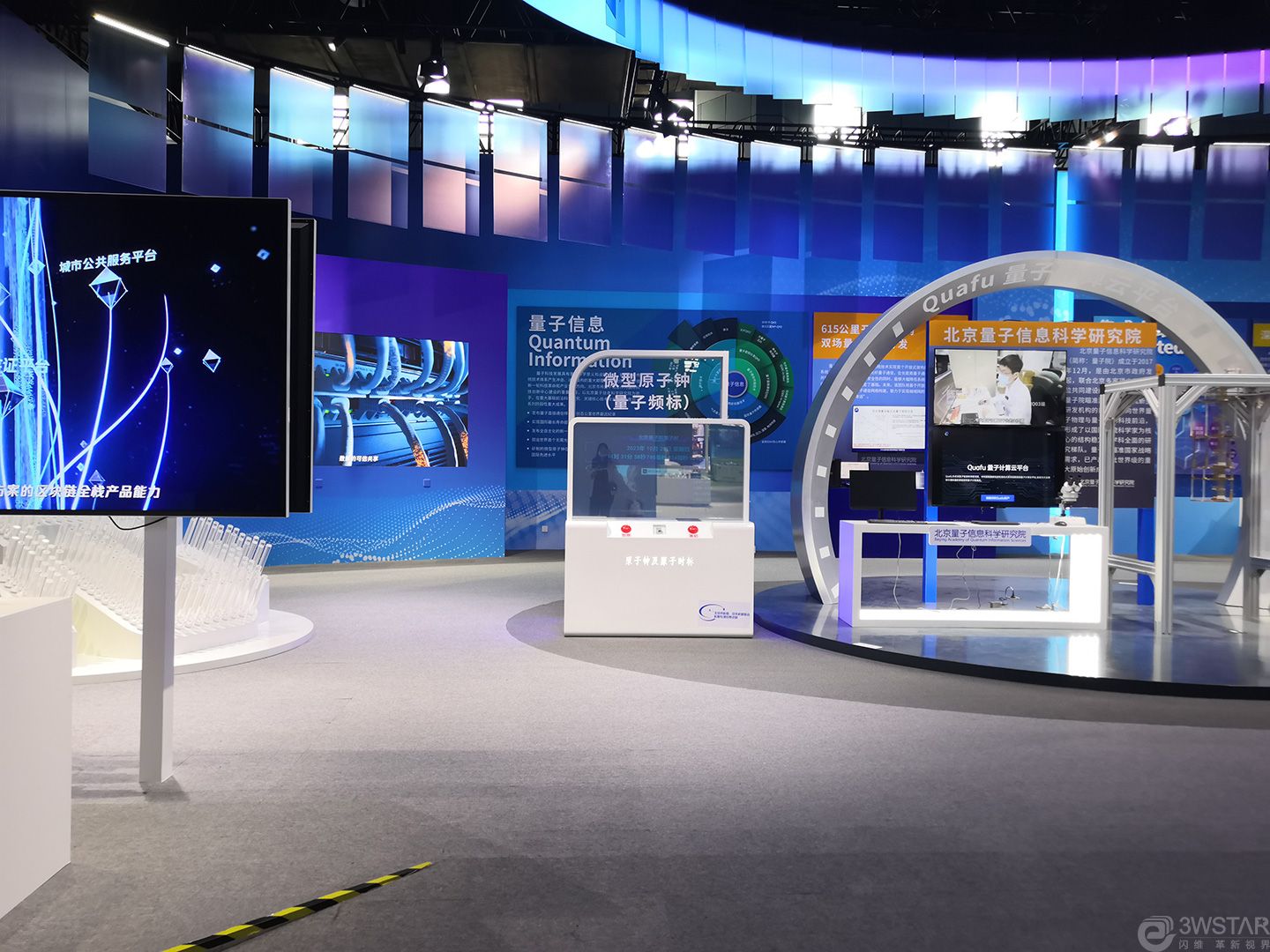 闪维参与2023年中关村论坛量子和低碳展区部分常设展布展,并对该展区的互动展项进行原创性研发。